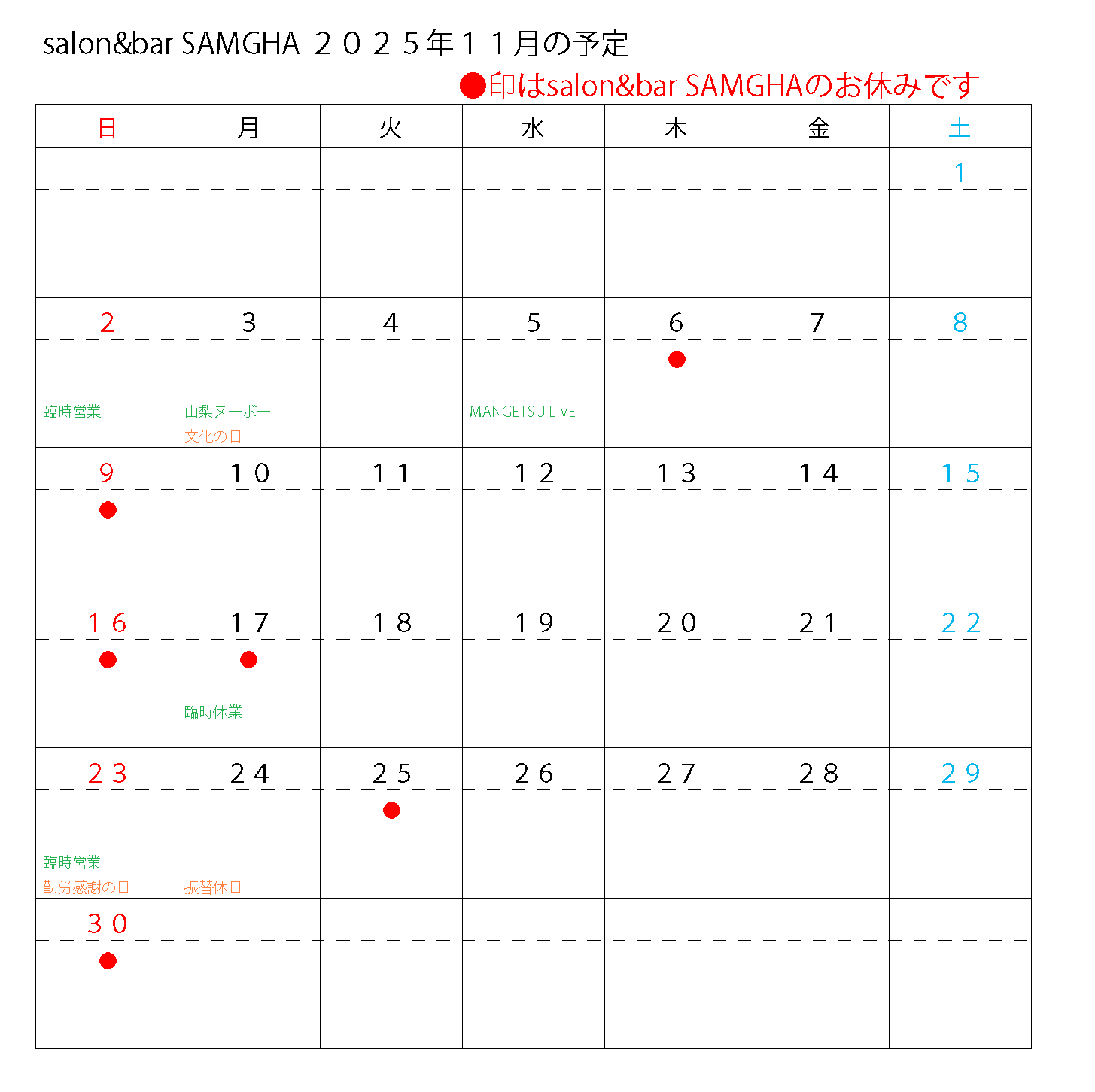 1.samgha@salonbar-samgha.jpへお申込メールもしくは店頭にて直接受付